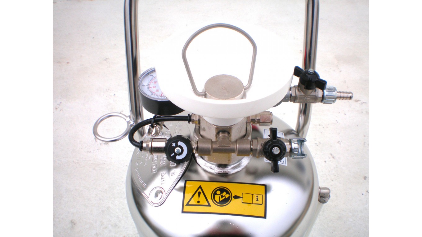 Un régulateur de pression et un manomètre sont également présents ; tout comme une buse à mousse et une buse de pulvérisation.