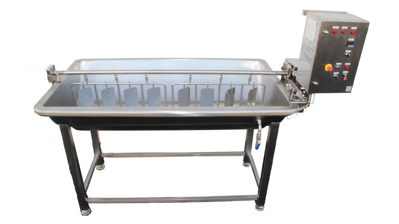De forme demi-cylindrique et d’un volume allant de 600 à 1500 L, la double paroi de la cuve permet le réchauffage et le maintien du lait à température. L’agitation pendulaire facilite le brassage du mélange caillé sérum. Le coiffage du grain de caillé (c’est à dire la formation d’une enveloppe autour du grain) est facilité par le variateur de vitesse. La vidange s’effectue grâce à une vanne située sur le côté de la cuve.