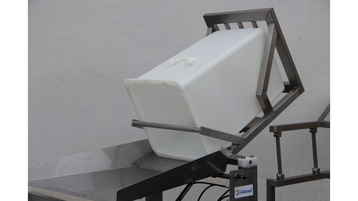 Le retourneur de bassines pneumatique permet de verser le caillé en une seule fois dans le bloc-moule à l’aide d’un répartiteur et de la glissière de répartition. Le fonctionnement est à air comprimé.