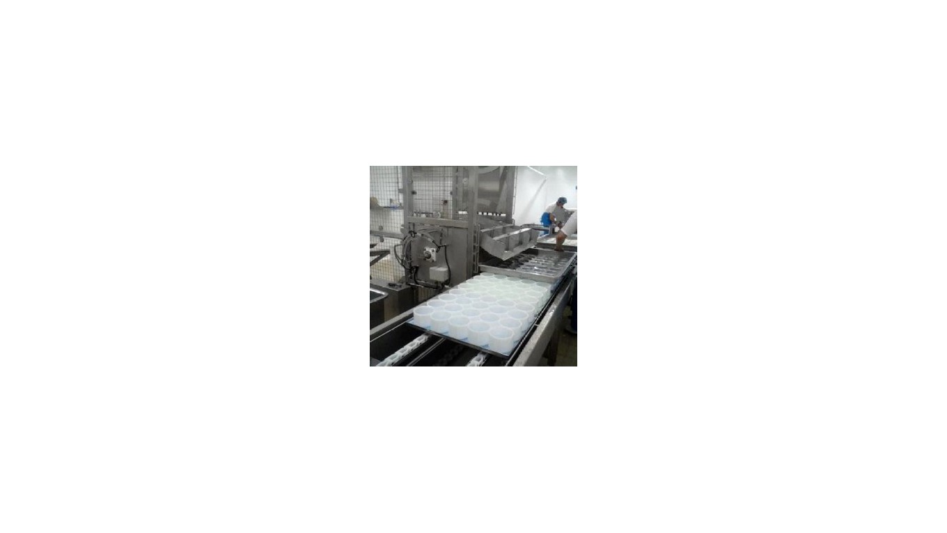La bassine à camembert est utilisée pour un moulage du mélange caillé-sérum, à l’aide d’un retourneur à bassine et d’un répartiteur, directement dans les moules placés sur les plateaux avec des stores. Le convoyeur à plateaux va permettre de les déplacer mécaniquement.