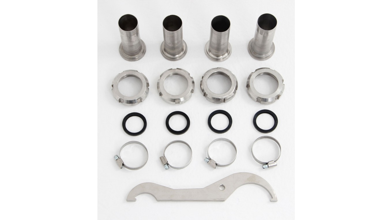 - D’une clé de raccord en inox double usage (pour raccord SMS à une extrémité et pour raccord DIN à l’autre extrémité)