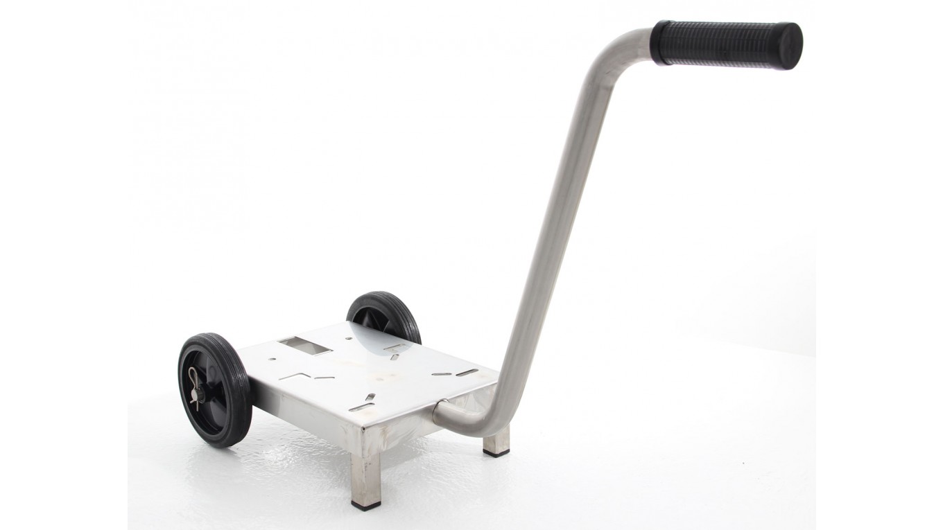 La pompe peut être placée sur un chariot à roulettes avec une poignée de direction. Un tuyau Tricoclair de diamètre 38mm est relié à la pompe pour aspirer le liquide via un raccord depuis le tank vers la cuve par exemple.